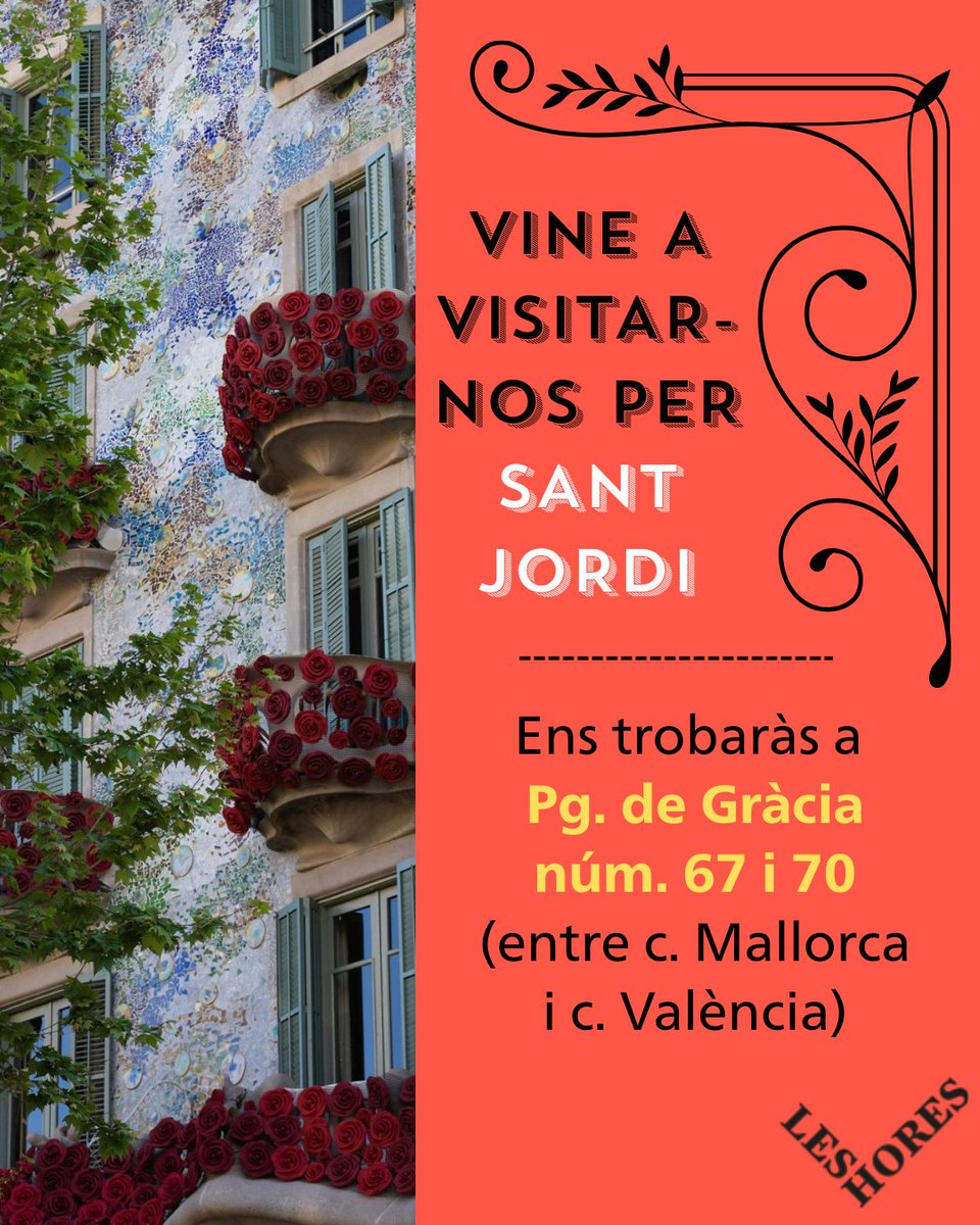 🌹📚 Aquest Sant Jordi regala Les Hores. Ens trobaràs a qualsevol llibreria. També serem a Passeig de Gràcia entre Mallorca i València.